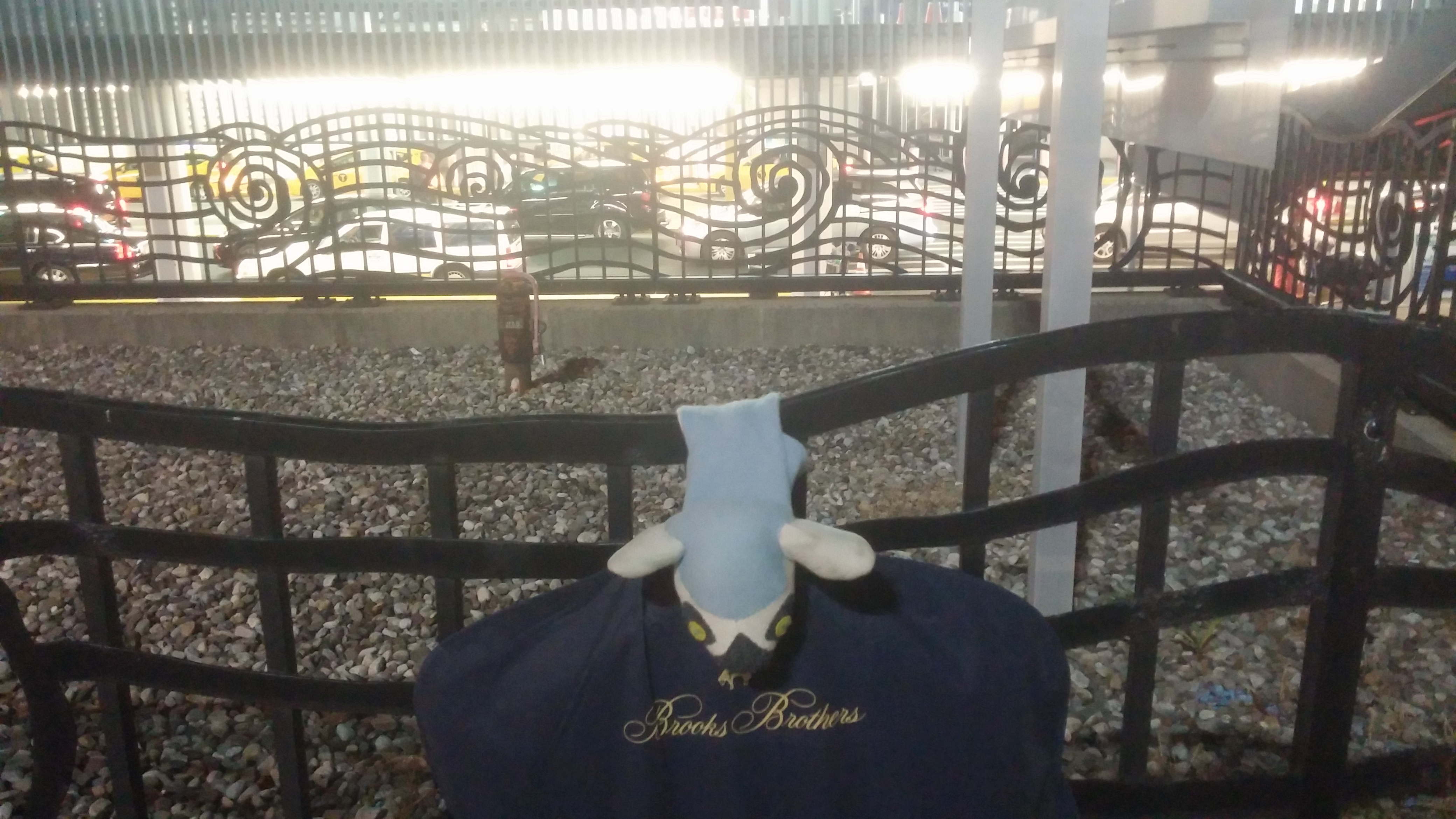Outside of JFK airport, just taking a stretch.